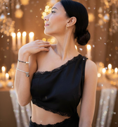 Diseñado para mujeres que no temen destacar, su caída fluida y su mezcla de texturas —satén brillante y encaje delicado— lo convierten en la prenda ideal para noches inolvidables, cenas especiales o eventos donde quieras marcar la diferencia.