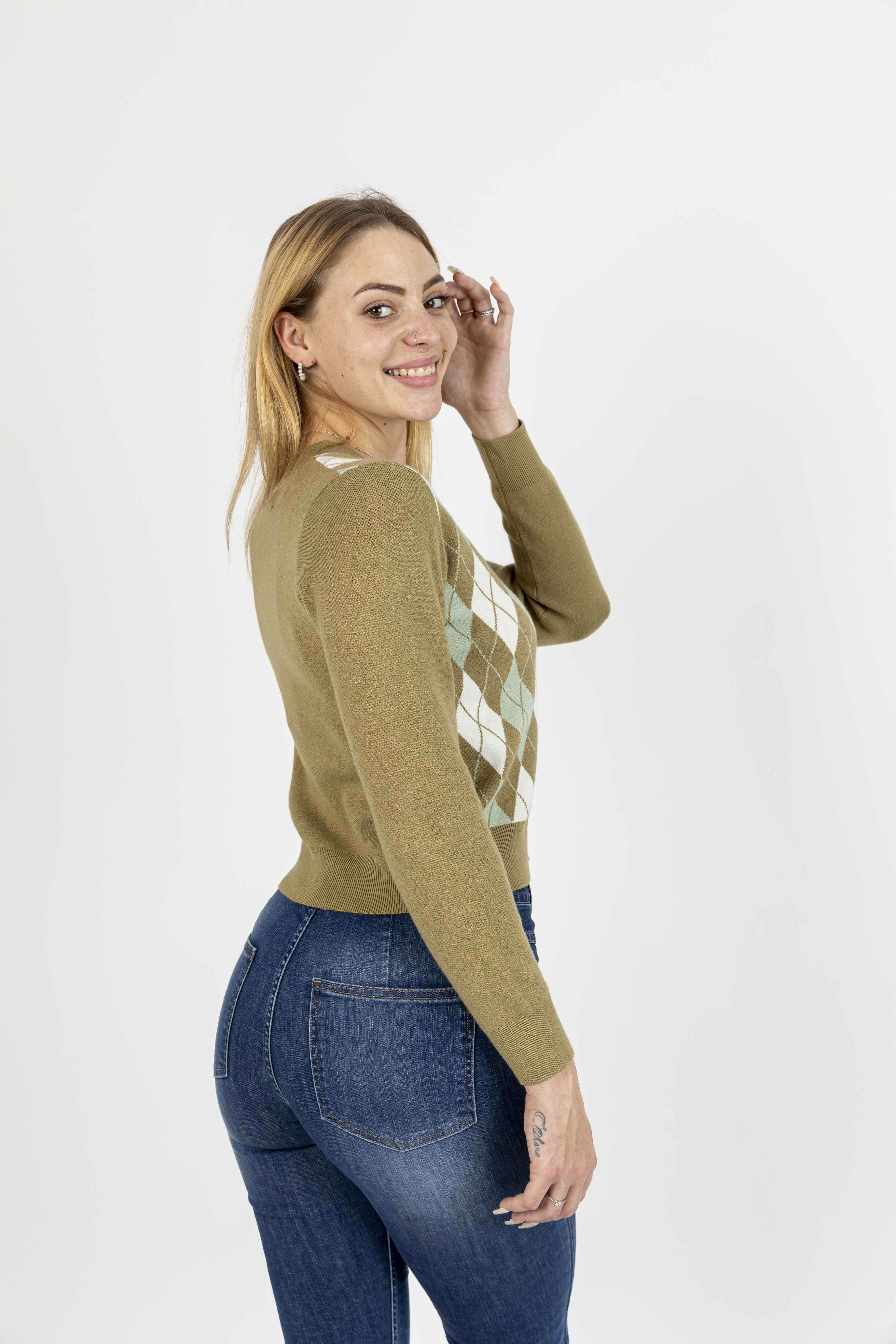 El Jersey Militar Diamond combina la elegancia del clásico estampado de rombos con un toque moderno y sofisticado. Su tono verde militar, junto con los matices beige y blanco, aporta un aire fresco y versátil ideal para cualquier ocasión. Confeccionado en un tejido suave y elástico, se ajusta cómodamente al cuerpo sin perder su forma.