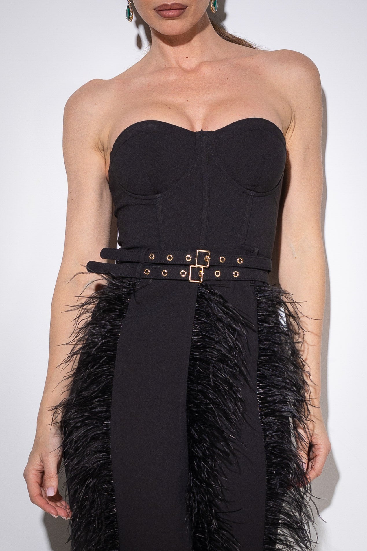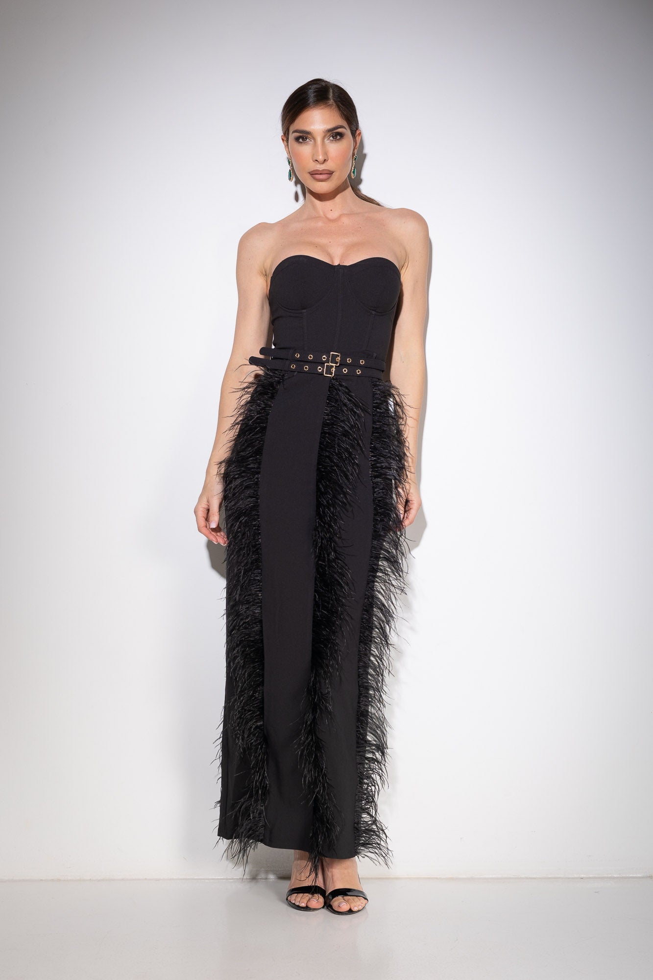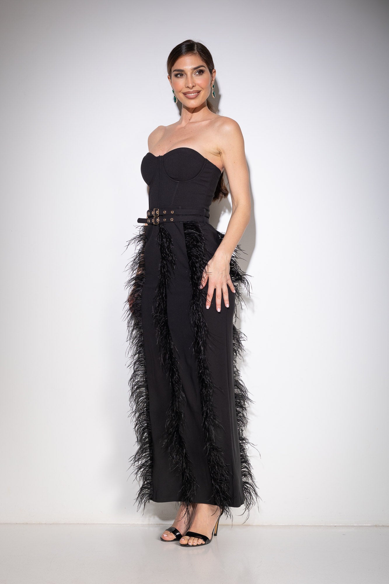 Vestido negro elegante con plumas – Black Swan