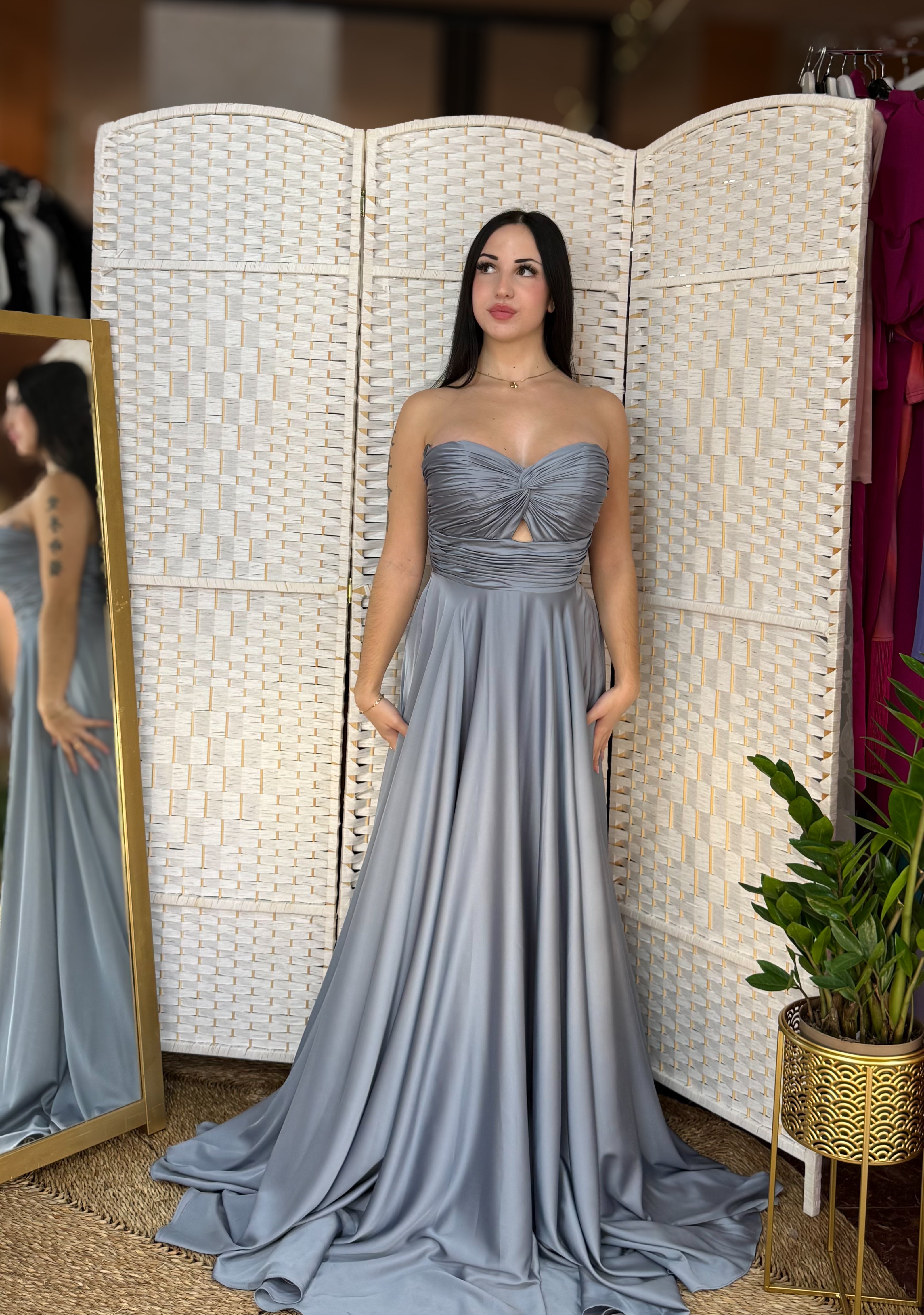 Un vestido largo palabra de honor que desprende elegancia, feminidad y sofisticación.