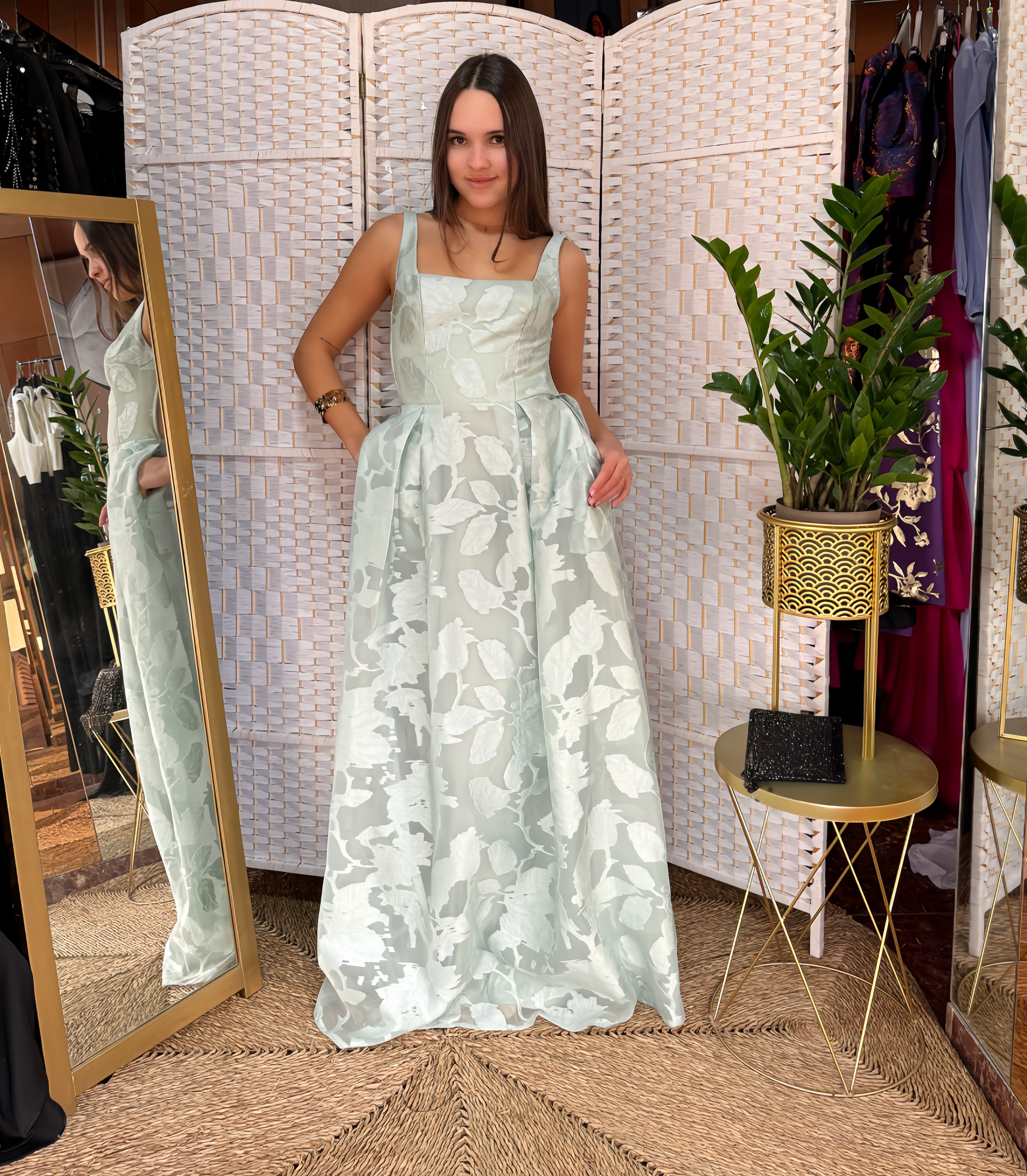 El Vestido Brisa Marina es la definición perfecta de elegancia fresca. Su tono verde agua suave, inspirado en el mar, aporta luminosidad y un aire romántico ideal para eventos de día y celebraciones veraniegas.