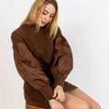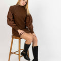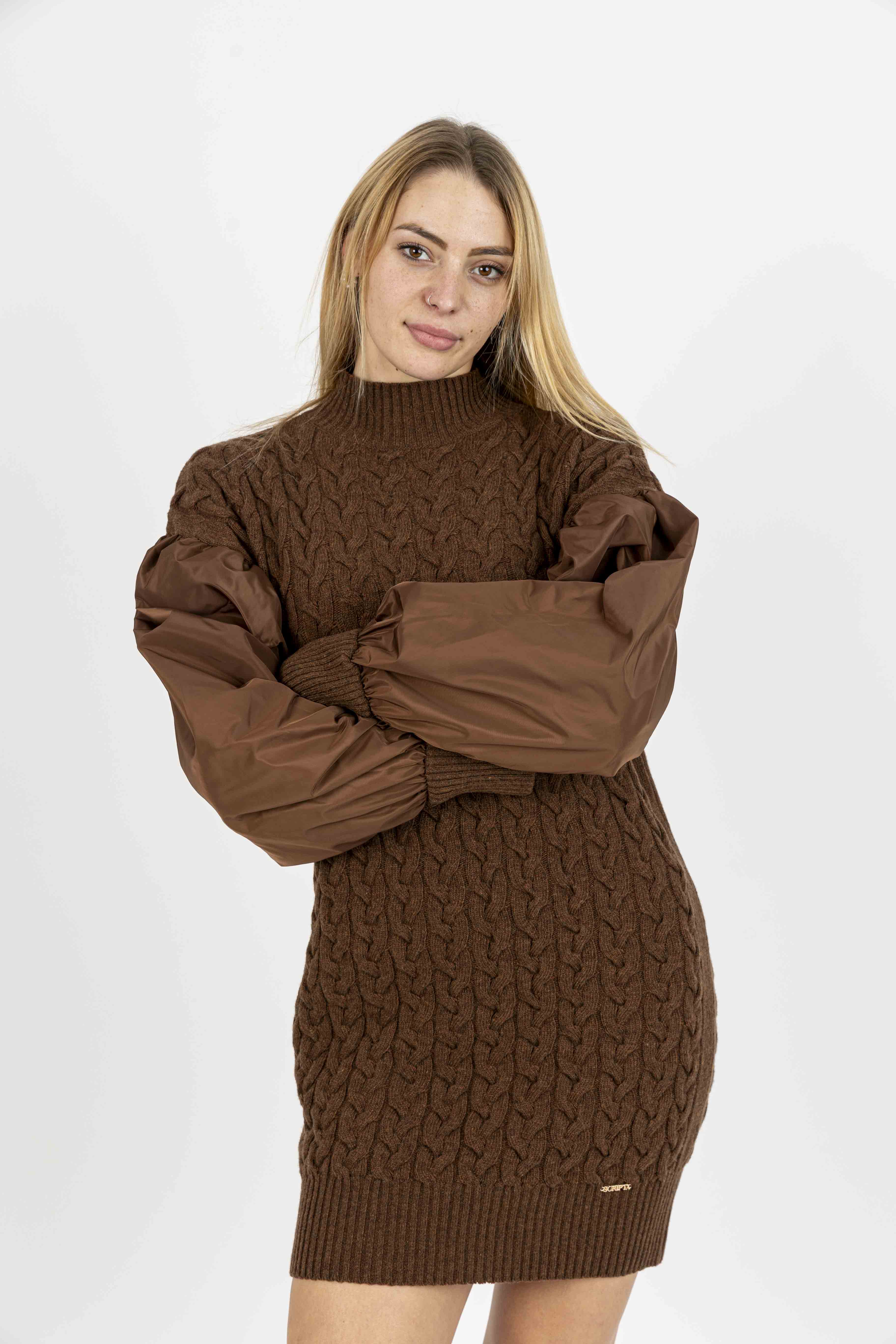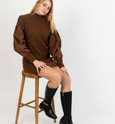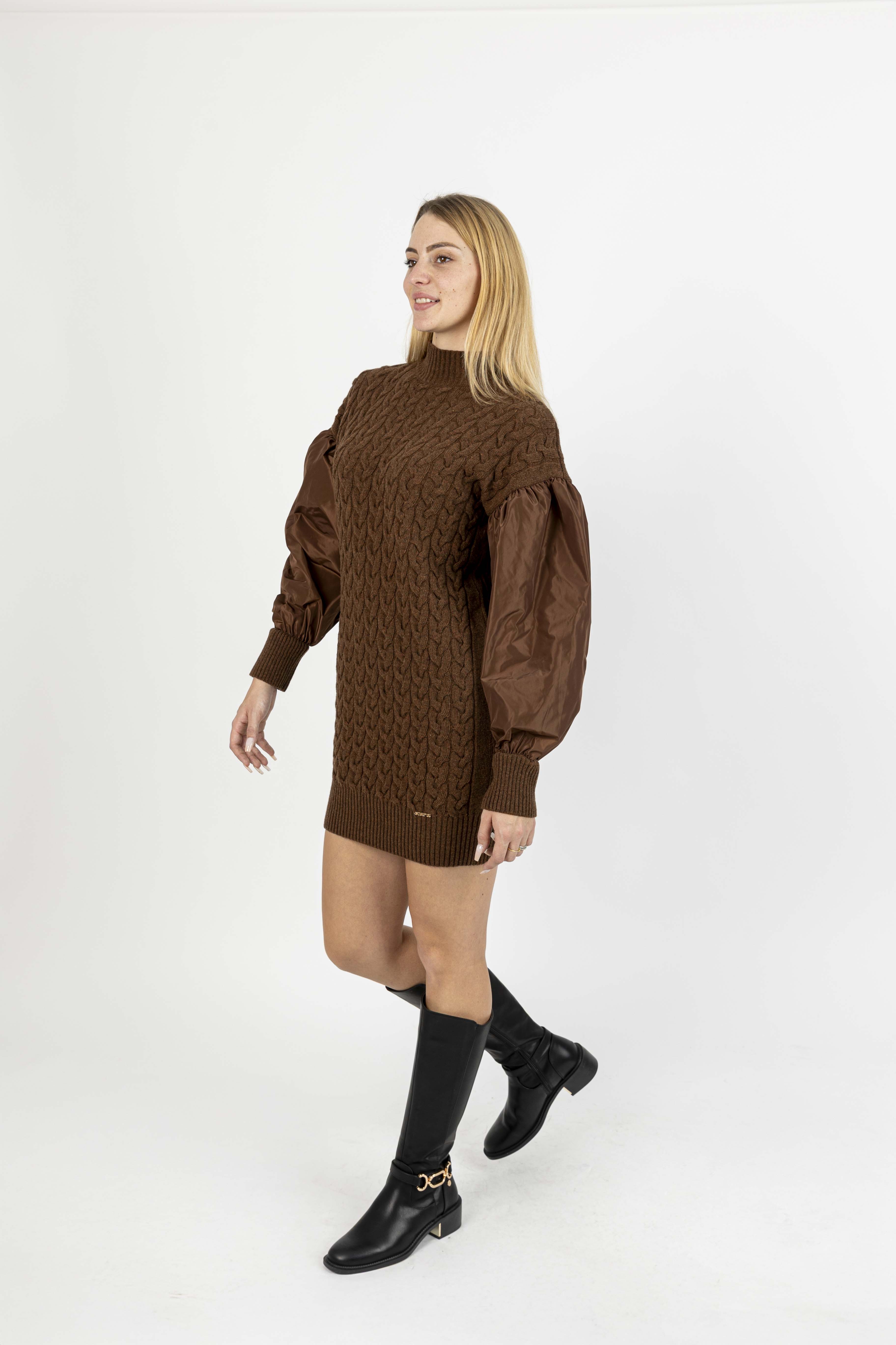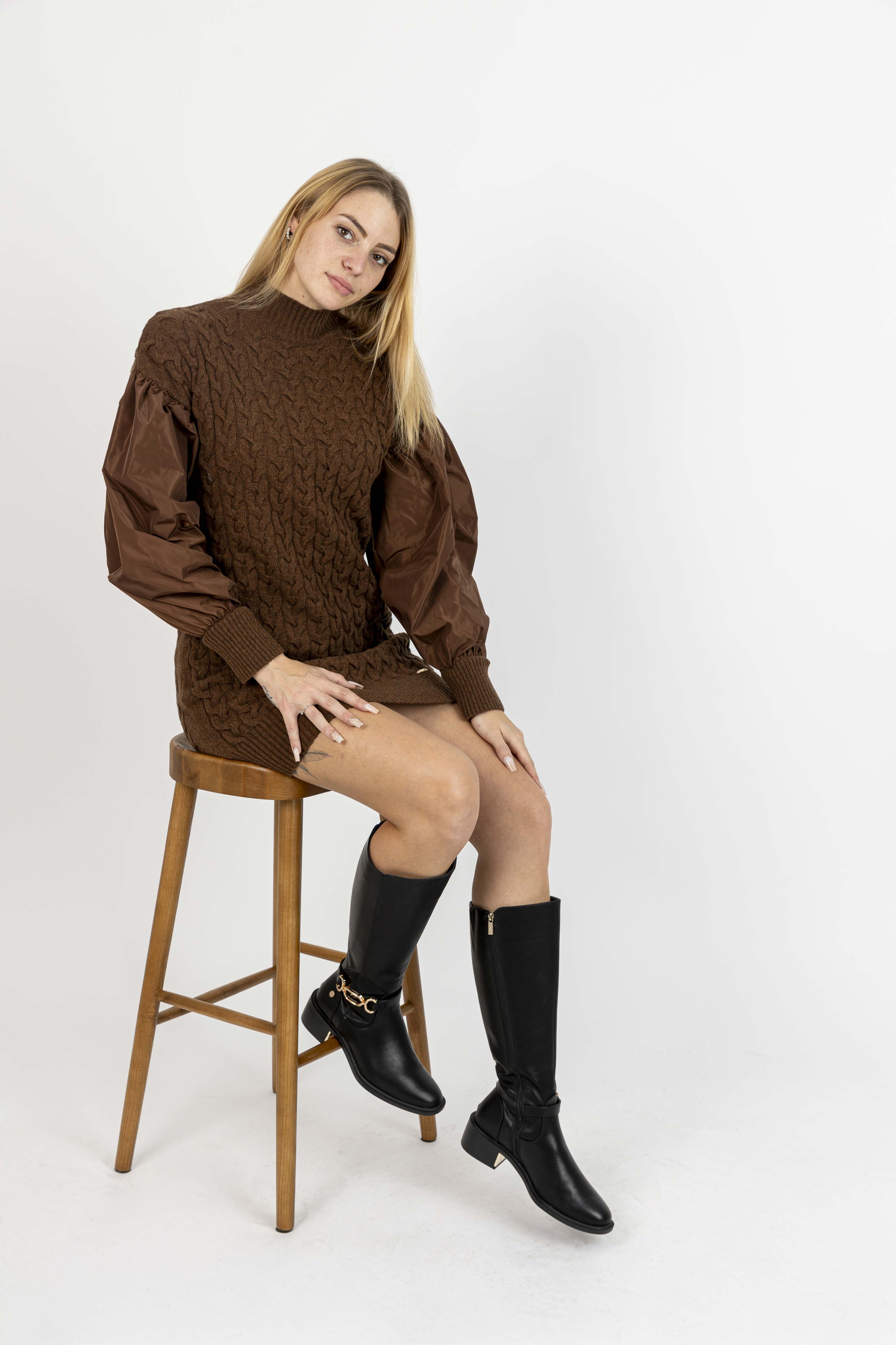 El veatido Choco Élite combina con la elegancia del tejido bouclé con el estilo sofisticado de unas mangas globo en satén. Su corte mini y cuello alto lo convierten en la prenda perfecta para destacar con un look otoñal chic . Ideal para combinar con botas altas y accesorios dorados. Diseñados para mujeres que buscan un equilibrio entre tendencia . comodidad y distinción.